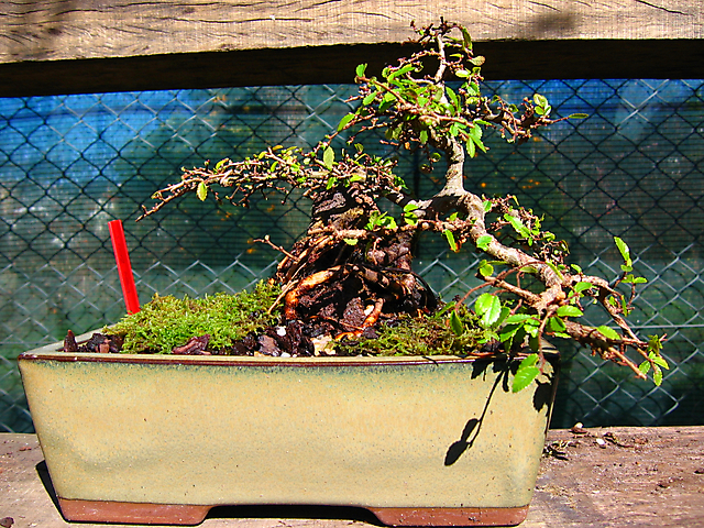 Afinal o inverno foi duro e perdeu algumas folhas2007-03-25Apesar de ter bastantes folhas em Dezembro o frio de Janeiro fez com que o bonsai perdeu muitas folhas. Vou deixar mais um ano neste vaso e para o ano mudo de vaso para ficar mais um 3 anos |